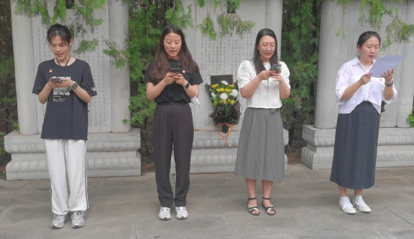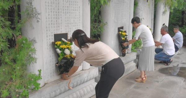 在科学家纪念园现场,党员同志们共同学习了杨钟健、裴文中、周明镇、贾兰坡、吴汝康、吴新智等老一辈科学家为古脊椎动物与古人类学毕生奋斗的感人事迹,党员代表深情诵读了杨钟健院士经典诗作《入党述怀》,并为忠骨长眠于青山的科学家敬献花束,向老一辈科学家致敬。
