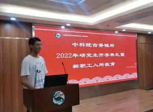 刘光仪书记代表研究所致辞。她首先向所有新同学和新职工表达最热烈的欢迎;作为前一年入所的新职工,她分享了她进入研究所后认识、融入、喜欢上研究所的经历和感受,希望大家能更好地融入研究所、更快地进入状态、更深地参与到研究所的科研工作中,为古生物学、考古学发展做出贡献;并祝福同学们和青年职工在未来的学习工作中展翅高飞,前程似锦。