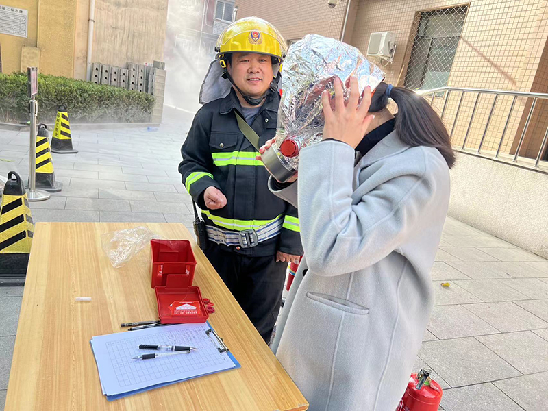 随后,物业公司专业人员对灭火器灭火的操作流程以及防毒面具的正确穿戴进行了讲解培训,广大职工、学生积极踊跃地参与到实际演练操作之中。