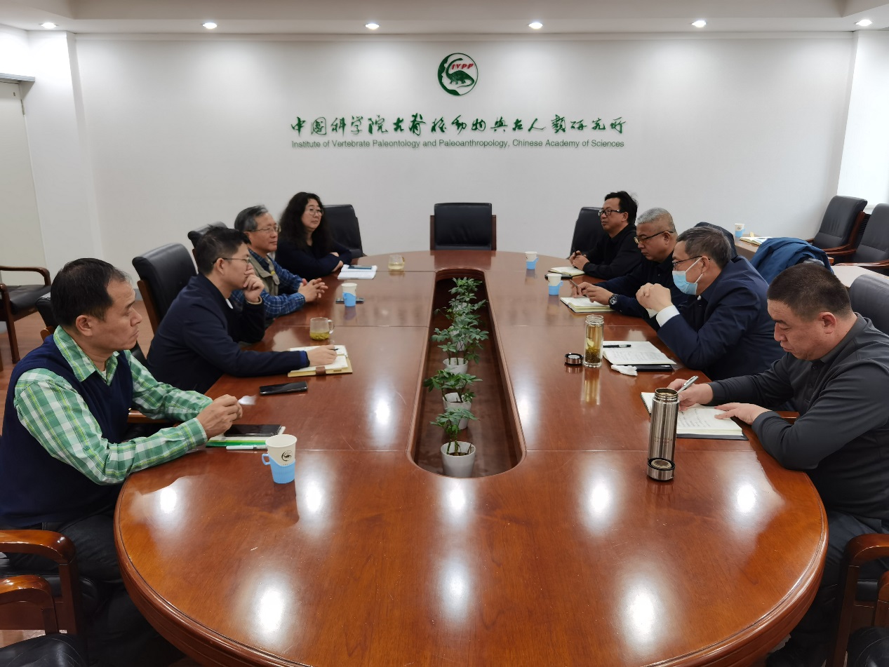 日,宁夏回族自治区文化和旅游厅副厅长张玉进、文物保护与考古处处长张玉、文物考古研究所所长朱存世等访问古脊椎所,研究所刘俊副所长、高星研究员、裴树文研究员、张翼处长参加。