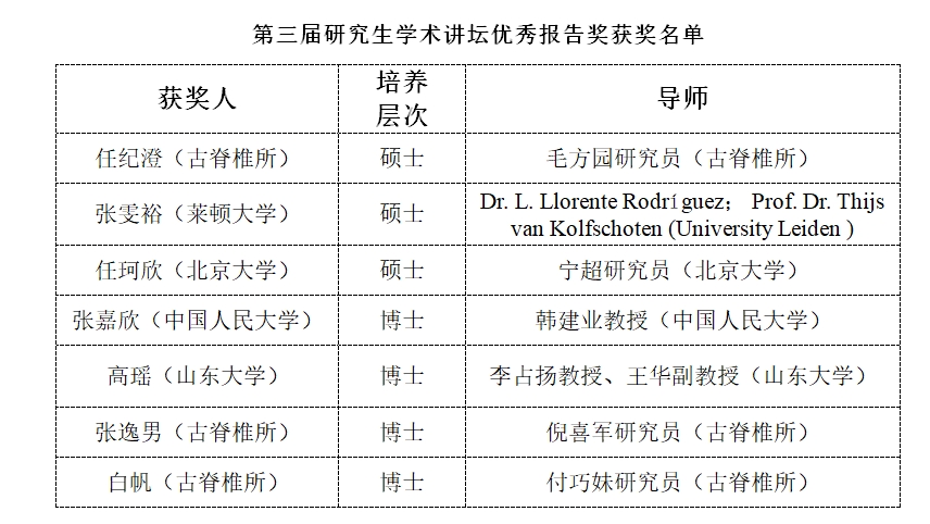 古脊椎所第三届研究生学术讲坛于3月29日成功举办,来自12家高校及科研单位的24名研究生作口头报告,线上线下百余人次参与。