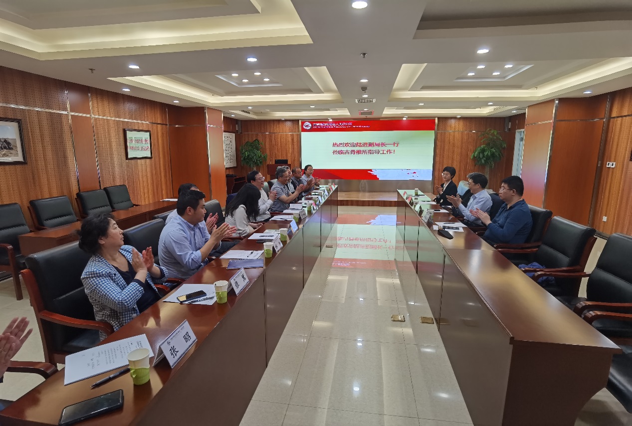 426日,国家文物局副局长陆进、科技教育司司长罗静一行到访古脊椎所调研并座谈,研究所党委书记、所长邓涛、高星研究员、付巧妹研究员、李小强研究员、裴树文研究员、周新郢研究员、张晓凌研究员、邢松研究员与科技处张翼处长等参加座谈。