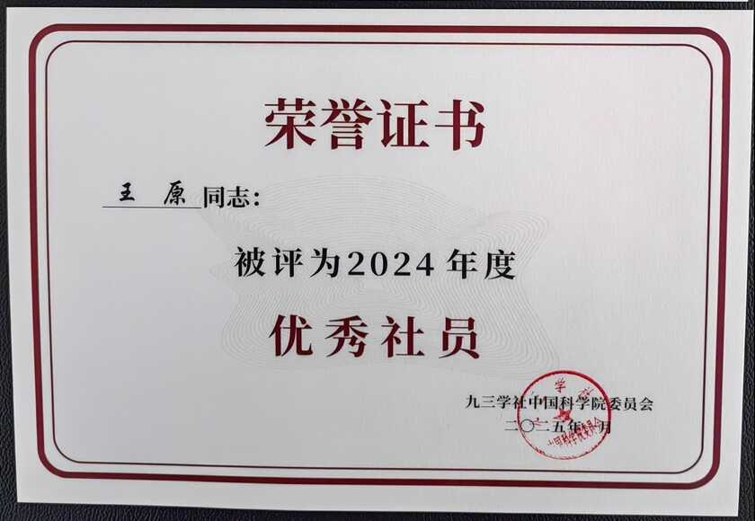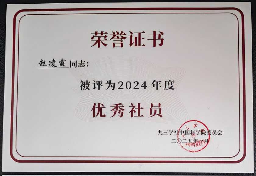 2025年1月18日下午,九三学社中国科学院委员会辞旧迎新总结会在国家纳米科学中心召开。九三学社中国科学院委员会主委陈春英院士向与会人员介绍了2024年度的工作。过去一年,九三学社中国科学院委员会在参政议政、社会服务、组织建设等方面取得了显著成绩。会上对表现突出的个人和集体进行了表彰。九三学社中国科学院第六支社的王原同志和赵凌霞同志被评为2024年度优秀社员。他们在科普和社会服务方面表现卓越,展现了九三学社社员的责任与担当。全院有25位社员获此荣誉。