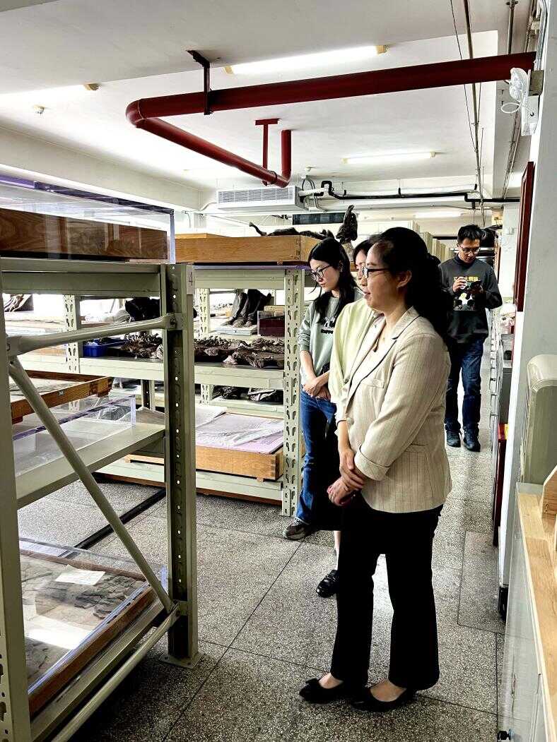 交流结束后,一行人又实地参观了标本馆、古动物馆。在参观过程中,大家近距离参观丰富多样的藏品,了解标本馆和古动物馆在标本收藏、展示和研究方面的方法及经验。此次交流活动,增进了不同单位间的相互了解,搭建起良好的合作交流平台。