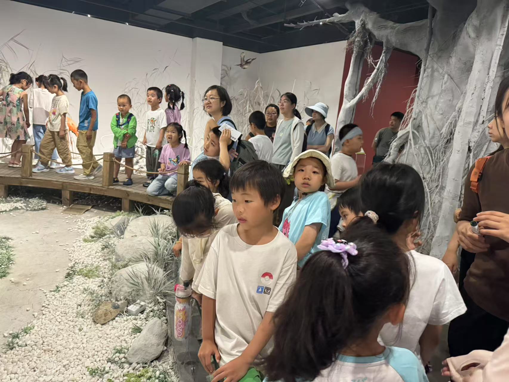 活动首站,大家走进了园内的南宫自然艺术博物馆。踏入这座充满巧思的场馆,就像打开了一本立体的自然百科全书。馆内空间开阔,多个特色展厅有序分布。动物环境生存厅里,逼真的动物标本搭配生动的场景,在讲解员专业引导下,孩子们仿佛跟随这些动物穿梭于不同生态环境,深度了解它们的生存智慧;自然文化教学厅以多元视角,将高原山地、湿地等多样生境栩栩如生地展现在眼前,骨骼构造的知识讲解,更是引发了孩子们对生命结构的强烈好奇;土壤植物虫族厅中,各类植物、虫蝶标本琳琅满目,种子世界、土壤世界等主题展览,为孩子们揭开微观自然世界的奥秘,点燃了他们对自然的求知热情。